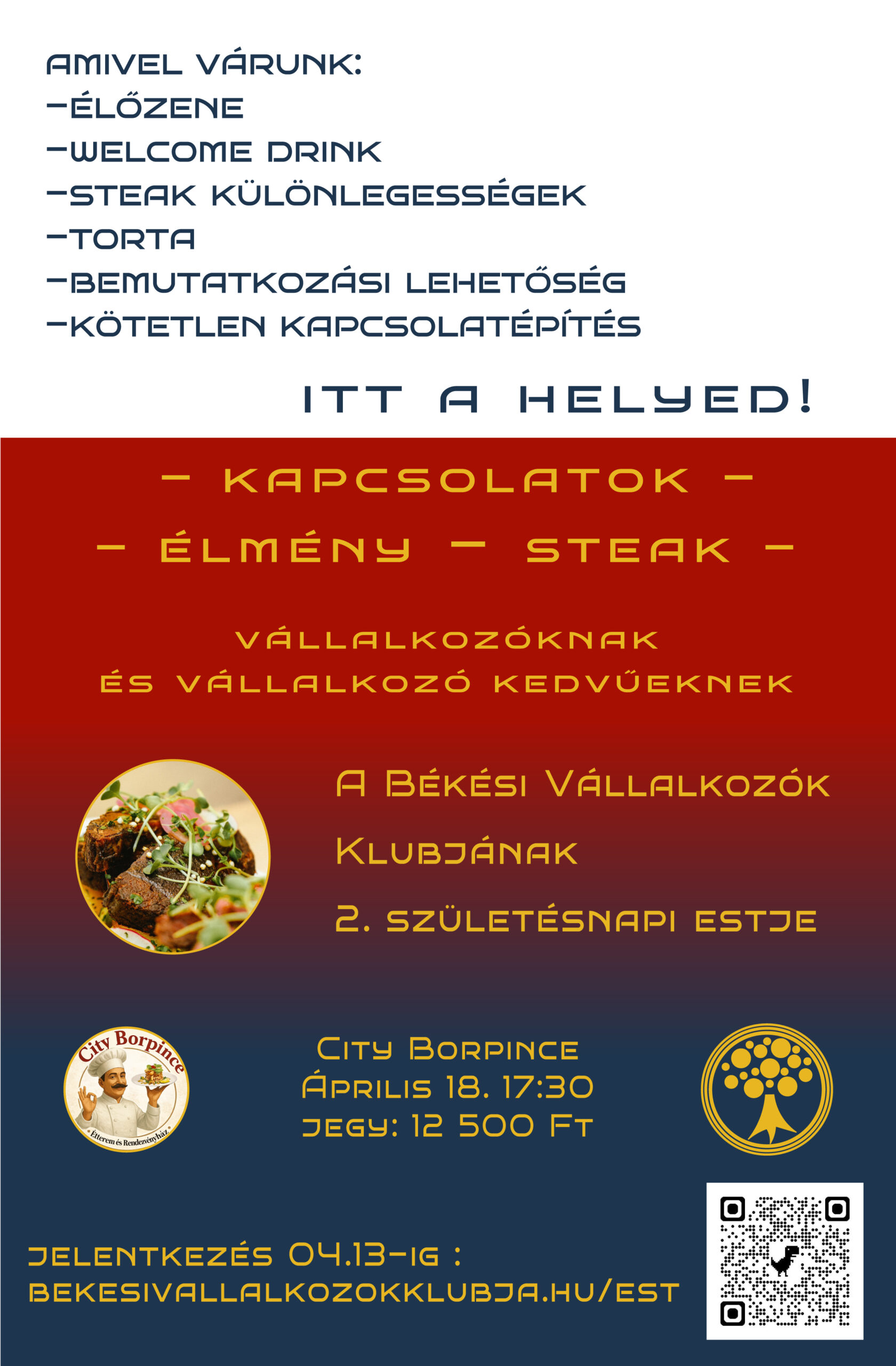 Szeretettel várunk a Békési Vállalkozók Klubjának 2. születésnapi estjén!